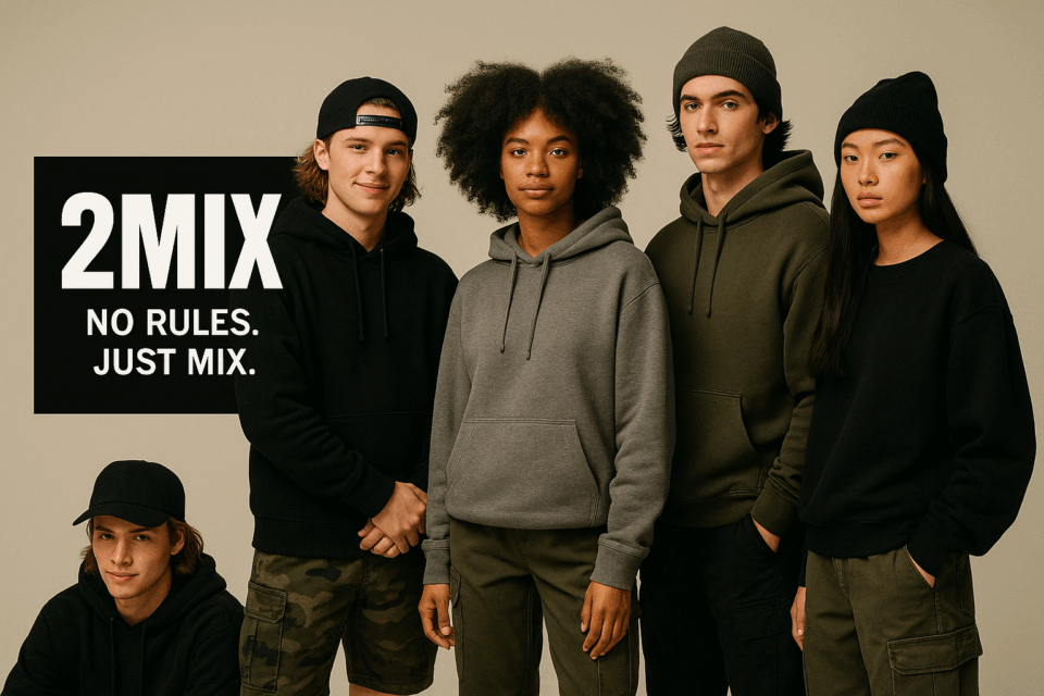 TWO MIX è un progetto streetwear nato fra i banchi di scuola e le chat di gruppo. Un brand che non segue il dress code, lo mescola. Oversize hoodie, jogger larghi, dettagli bold e colori che si incastrano come le giornate tra scuola, allenamenti e serate con gli amici.